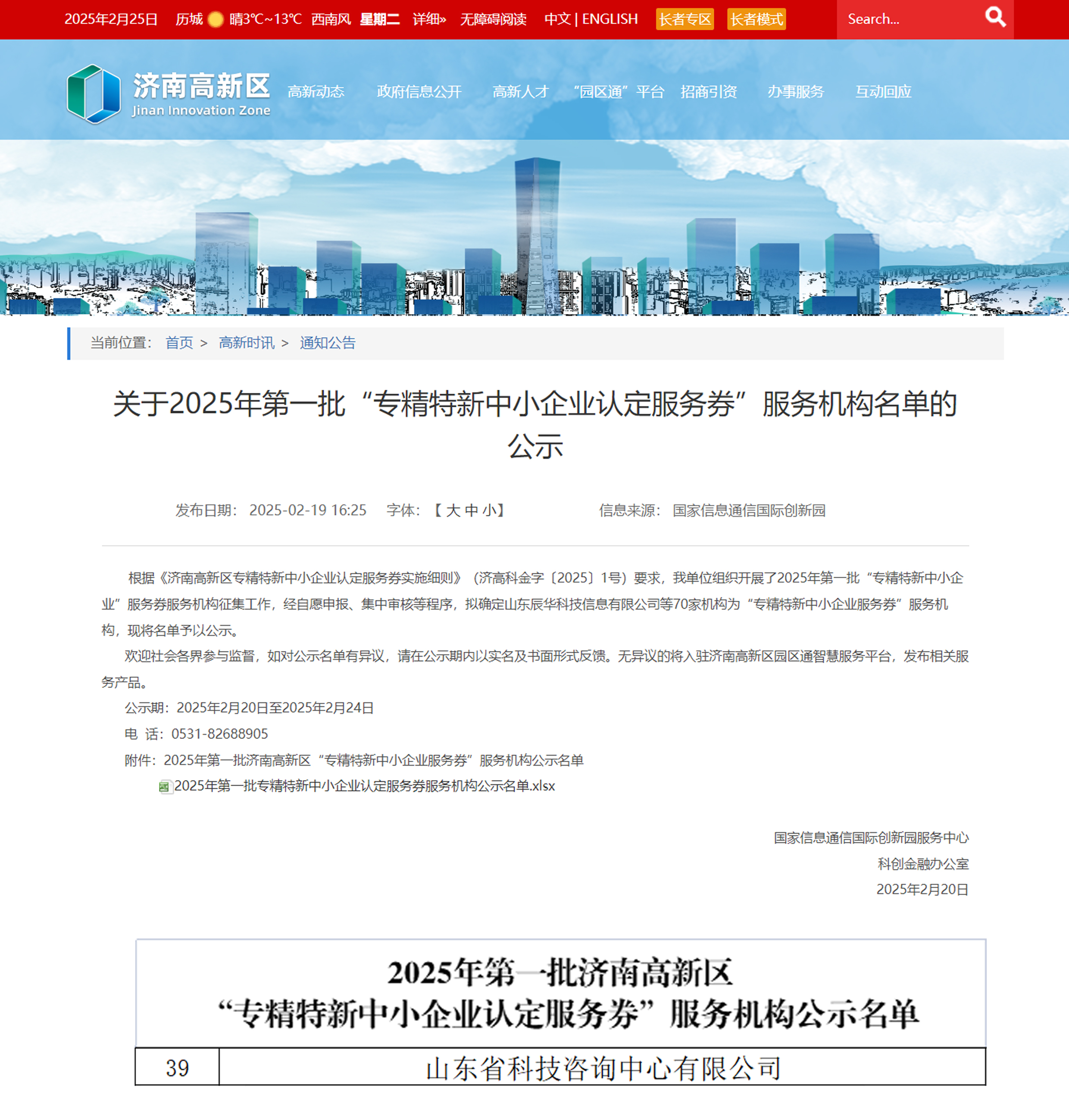 近日,國家信息通信國際創(chuàng )新園服務(wù)中心科創(chuàng )金融辦公室公布了2025年第一批“專(zhuān)精特新中小企業(yè)認定服務(wù)券”服務(wù)機構名單,公司順利入選。