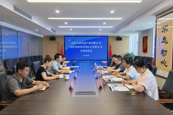 7月31日,山東大眾信息產(chǎn)業(yè)有限公司副董事長(cháng)、執行總經(jīng)理盛堃一行到山東省科技咨詢(xún)中心有限公司進(jìn)行交流座談。公司董事長(cháng)魏正杰熱情接待并主持座談。